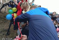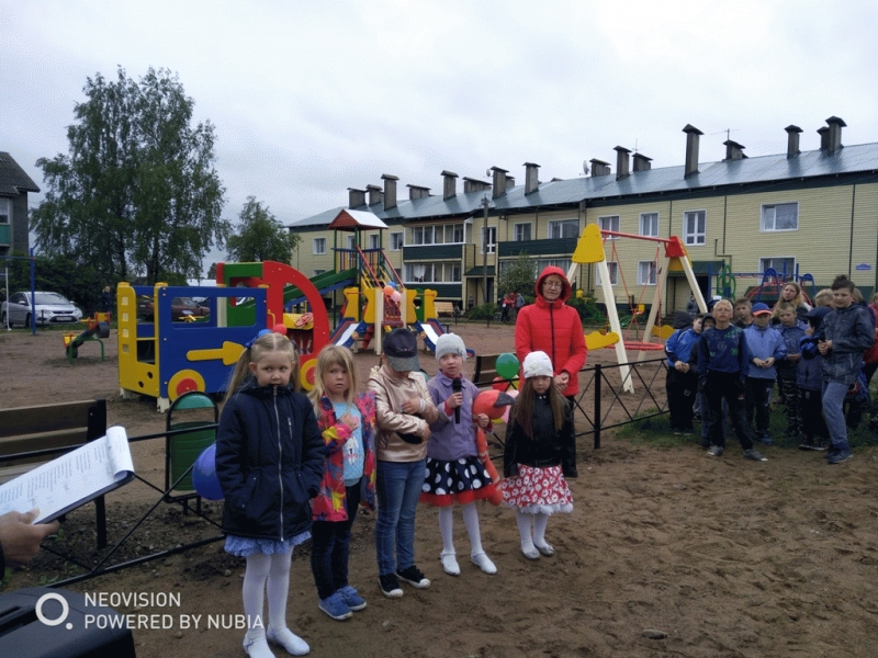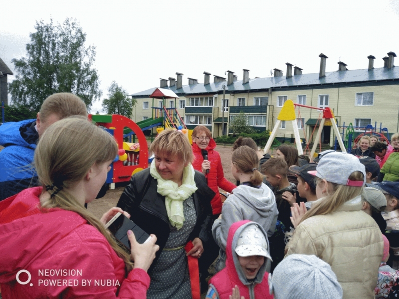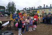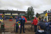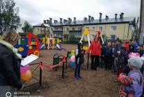 Дети прочитали стихи, после чего была перерезана красная ленточка, и все участники торжества под веселую музыку отправились играть и отдыхать на новой площадке.