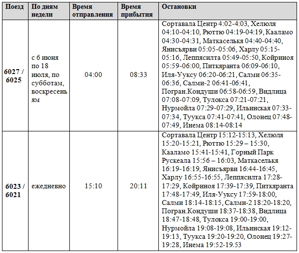 Расписание поездов «Орлан», курсирующих по маршруту Лодейное Поле – Сортавала – Лодейное Поле