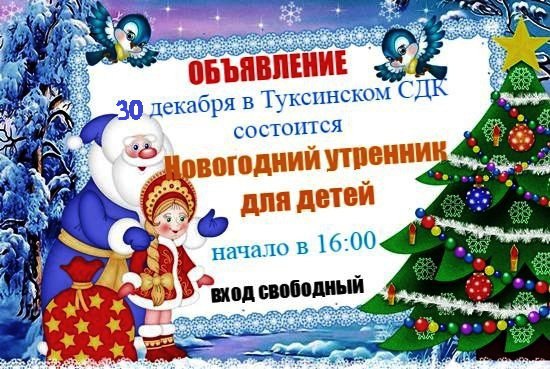 Приглашаем Вас принять участие в новогодних мероприятиях, проводимых МБУ "Туксинский СДК".