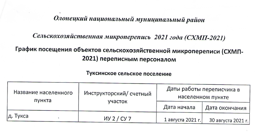 График посещения объектов сельскохозяйственной микропереписи
