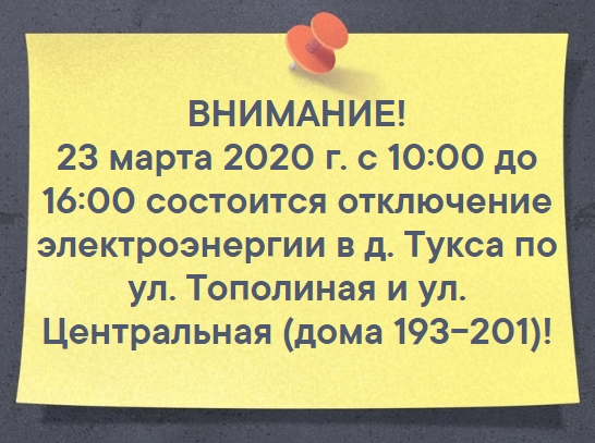 Отключение электроэнергии 23.03.2020!