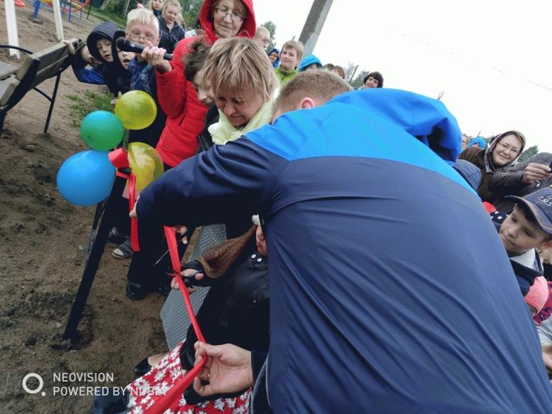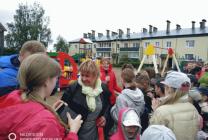Дети прочитали стихи, после чего была перерезана красная ленточка, и все участники торжества под веселую музыку отправились играть и отдыхать на новой площадке.