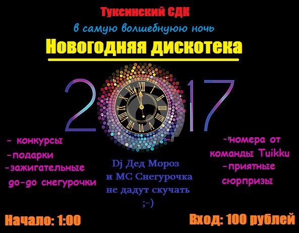 Приглашаем Вас принять участие в новогодних мероприятиях, проводимых МБУ "Туксинский СДК".